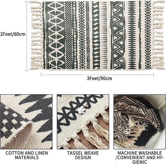 BOHO Rug - Natural Hand Woven Rug with Vintage Tassels Rug | Modern Farmhouse Rugs in various colors
