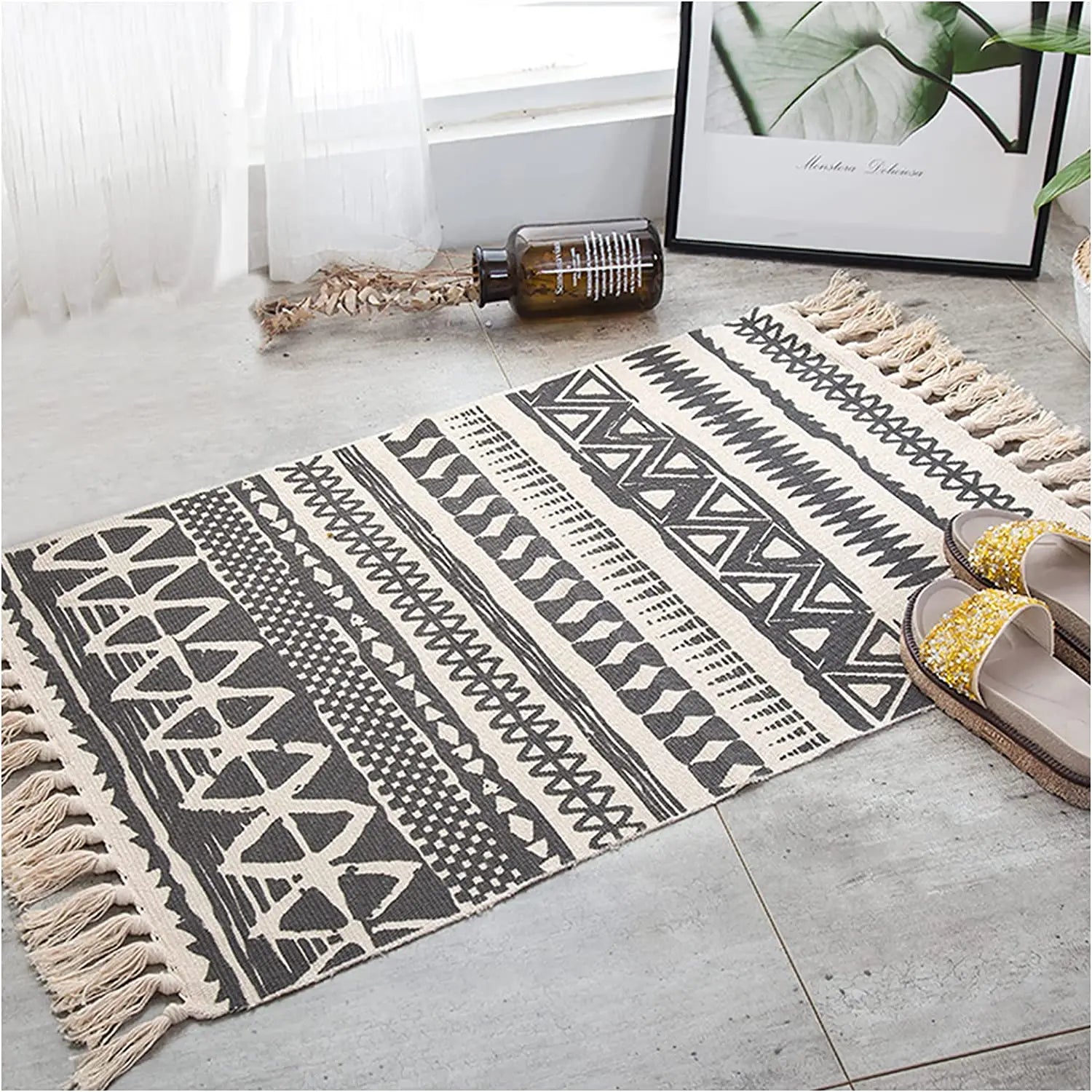 BOHO Rug/Bathroom Doormat (23.62 x 35.43 inches | 60x90cm) Woven Small Area Rug Bohemian Door mat Cotton Modern Floor Mat with Tassel Bedroom Kitchen Washable Rug